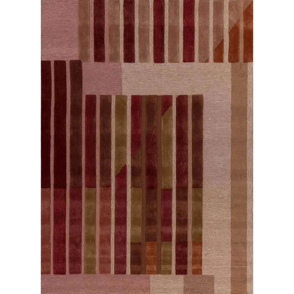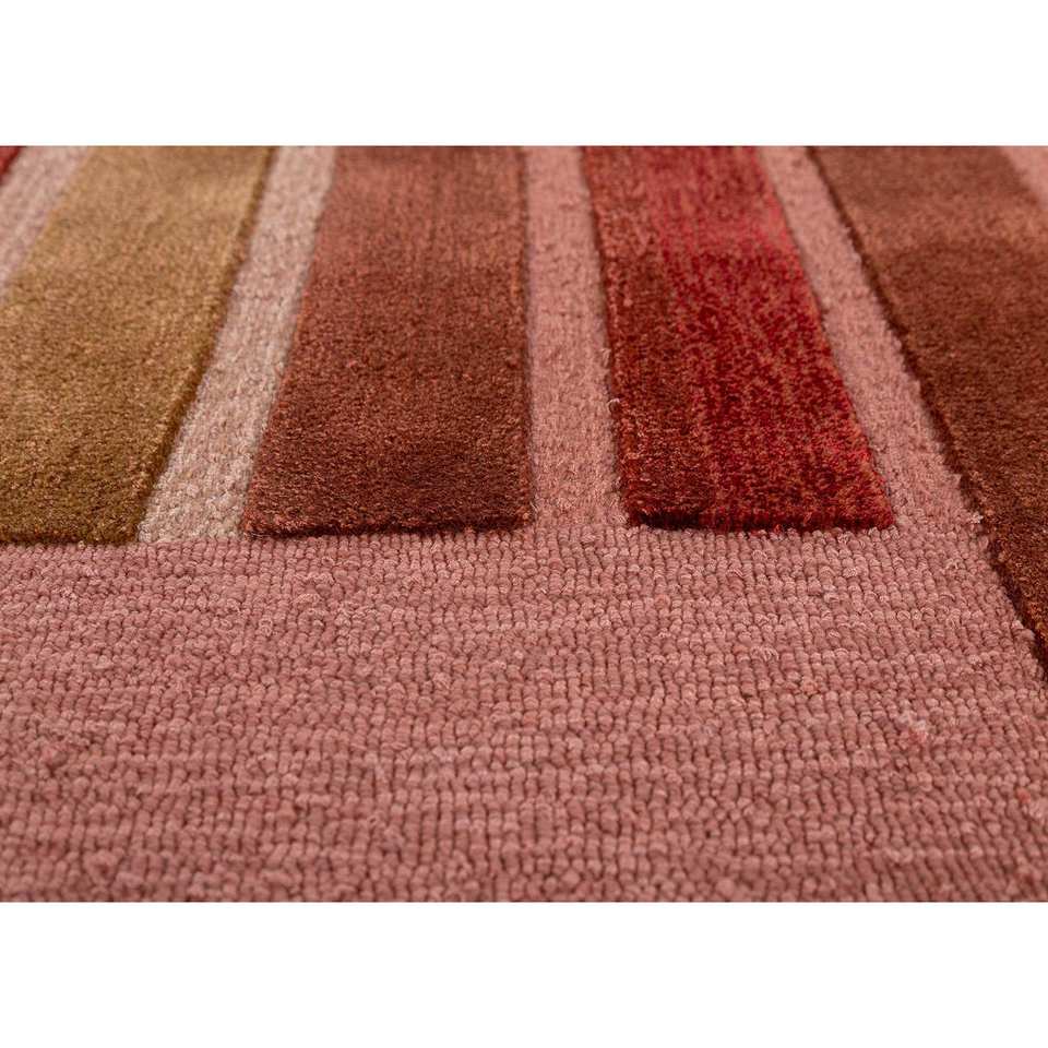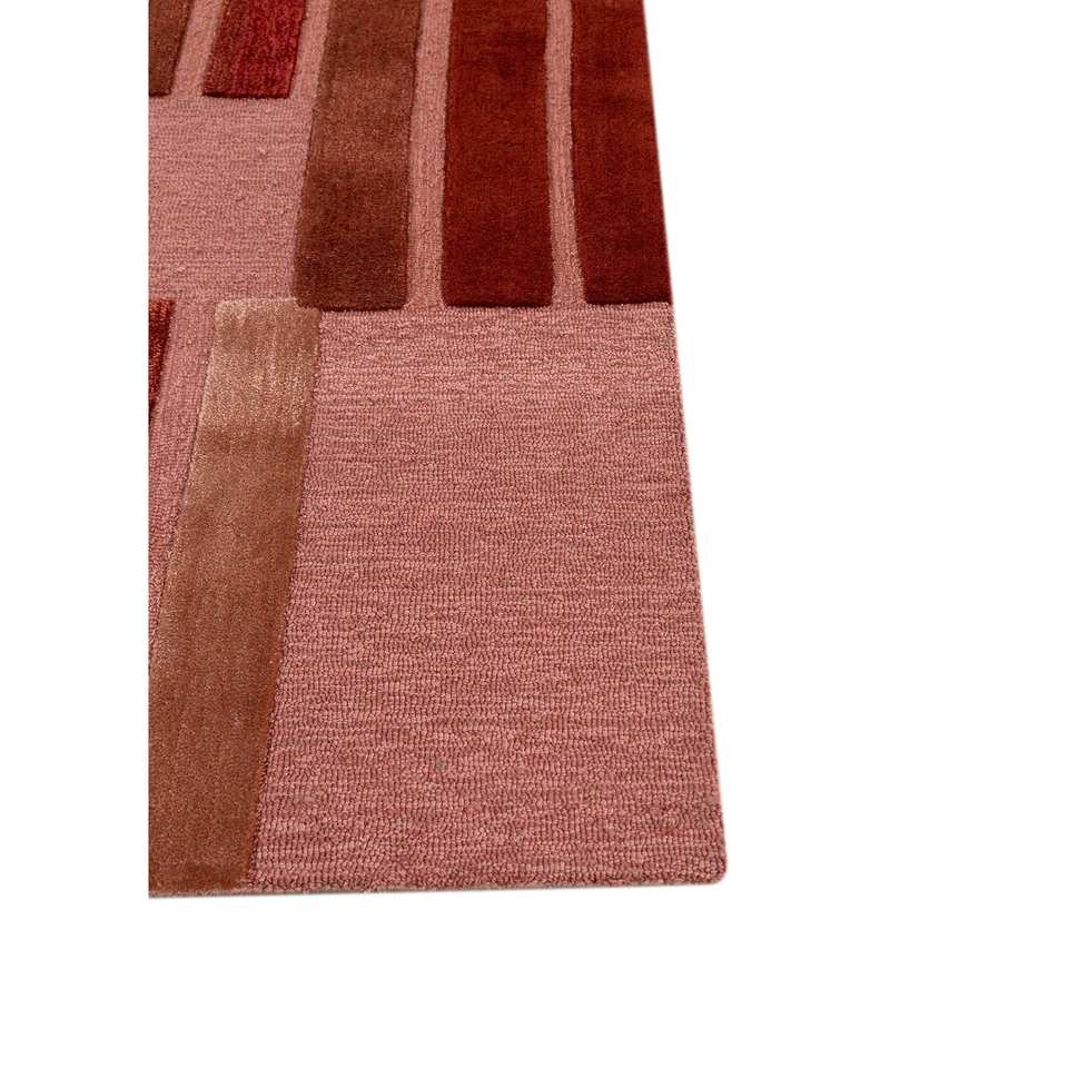 Alfombra de Lana y Viscosa Tejida a Mano con Rayas Rojas y Naranjas, Modelo Tnq-3236 (Cs-01), para Decoración de Sala de Estar