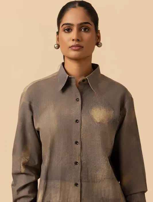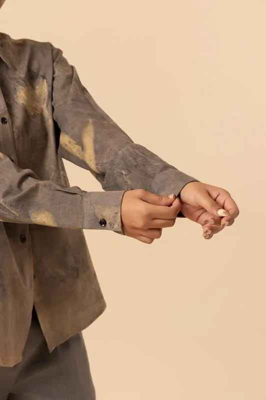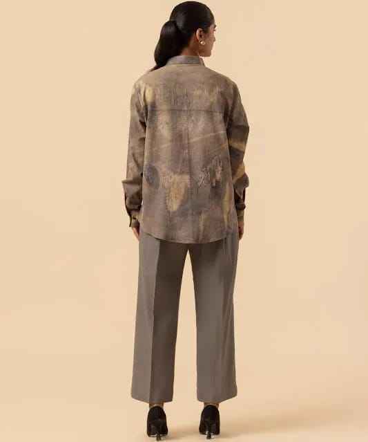 Traje de pantalón de pierna ancha con estampado abstracto y mezcla de lino