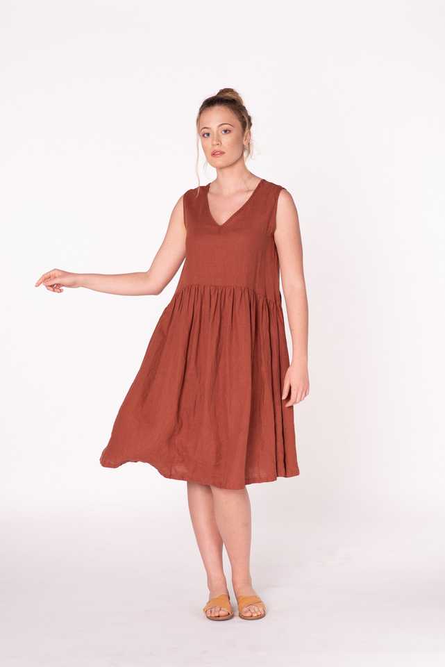 Vestido de lino de cintura alta Vintage hecho a mano con volantes, diseño personalizado, vestido de dama de honor de verano, características, patrón Natural, bolsillos tejidos