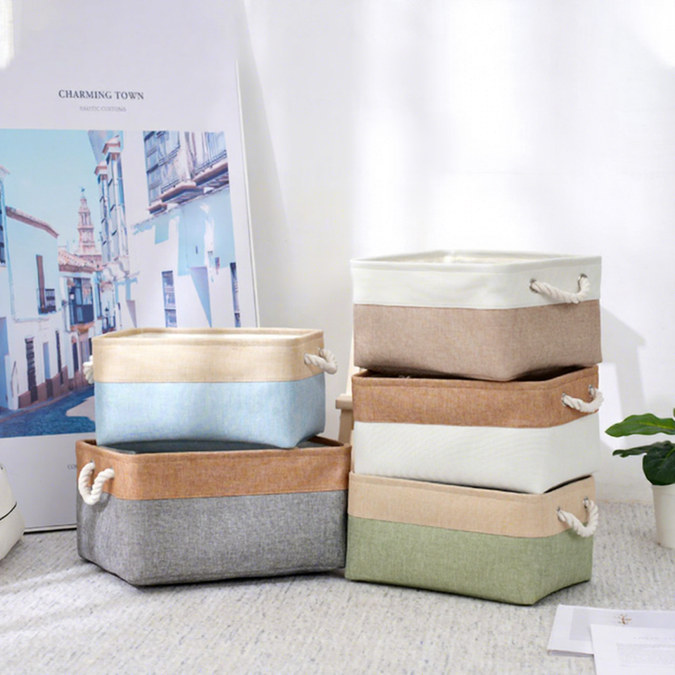 Caja de Almacenamiento Rectangular Plegable de Tela con Cuerda de Lino, para Organización de Ropa y Juguetes, Uso en Escritorio, Otoño 2024