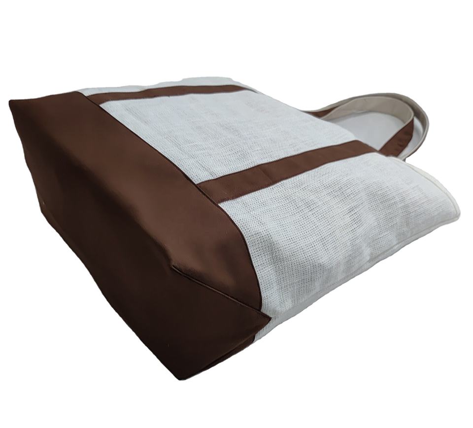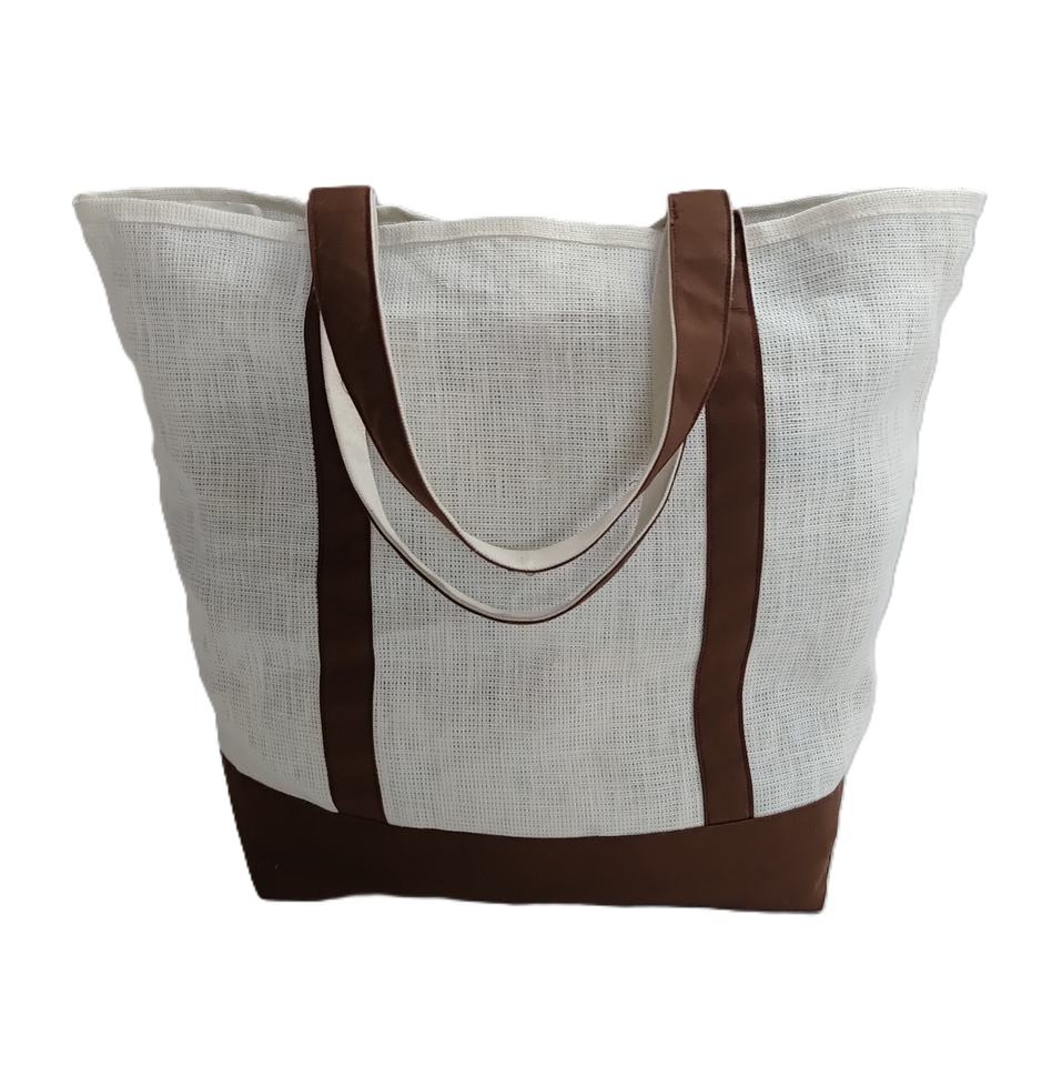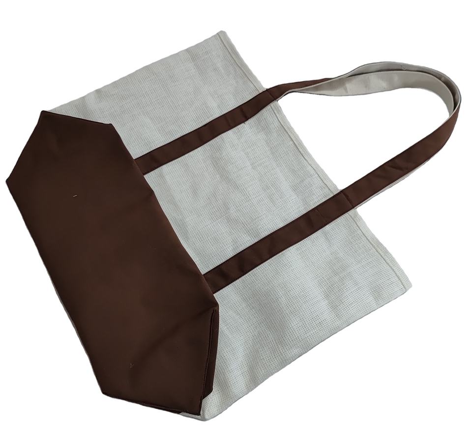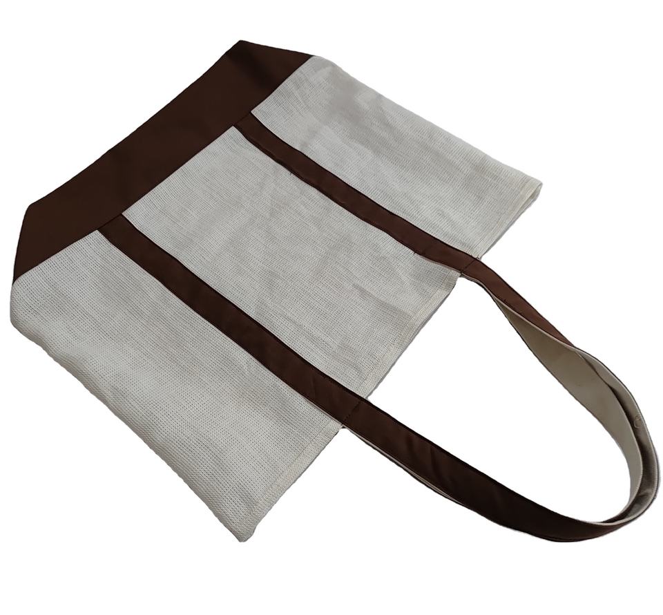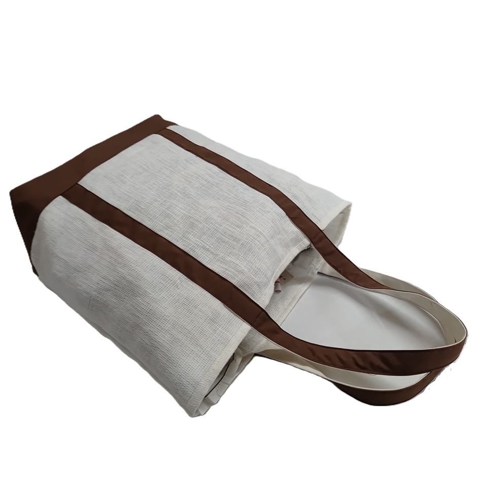 Bolsa de lino para regalo y promoción, diseño exclusivo, base y asa con ribete de tela de poliéster, bolsa de compras de lino