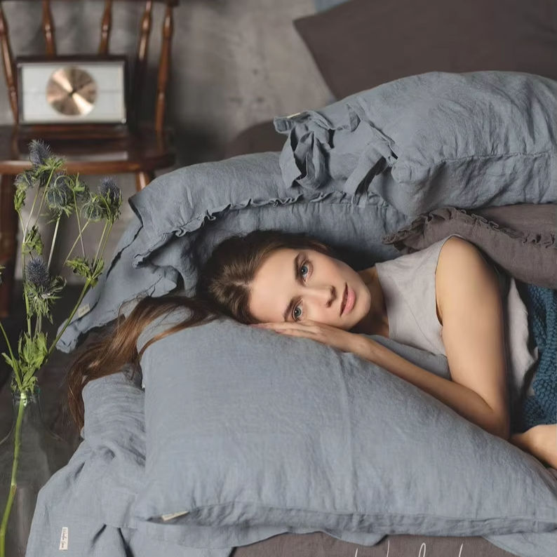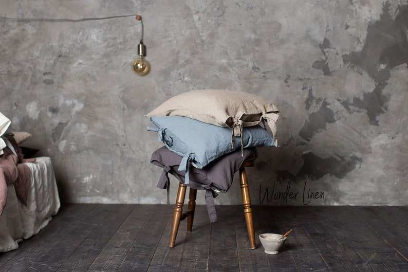 Fundas de Cojín Lumbar de Algodón 100% Tejido a Cuadros con Acabado Natural Stonewashed, 200 Hilos, Suaves, Tipo Lino, con Cierre de Cordón