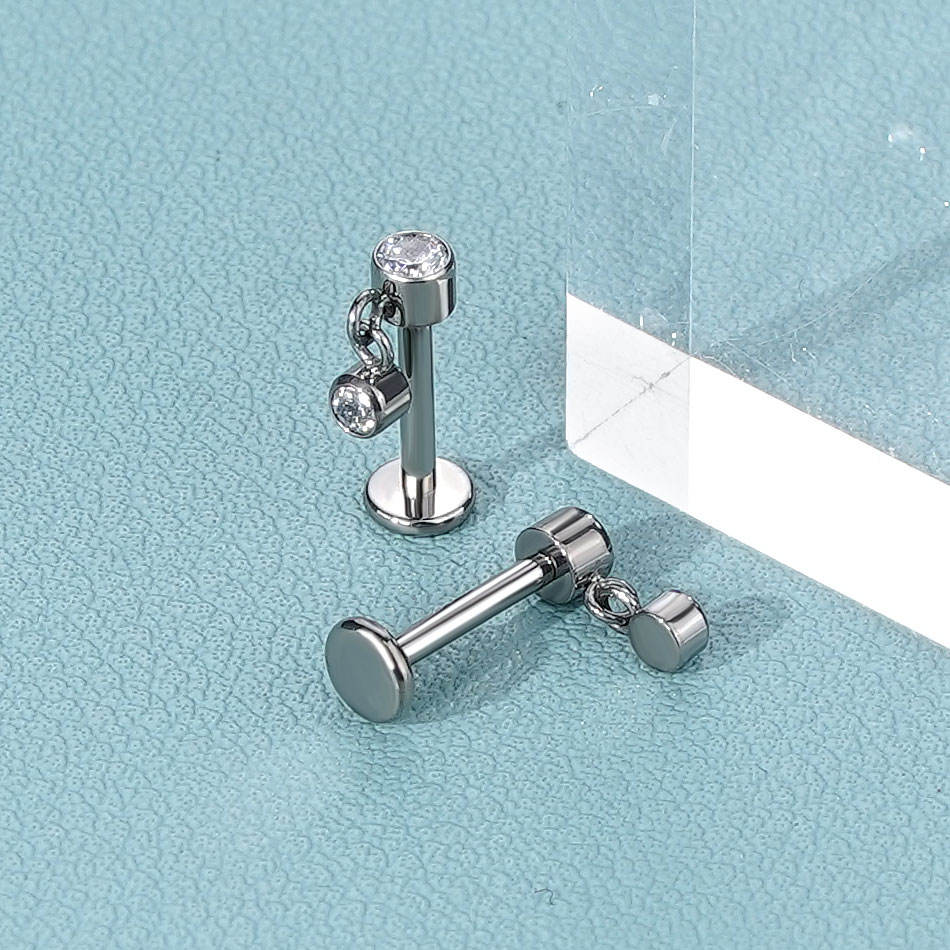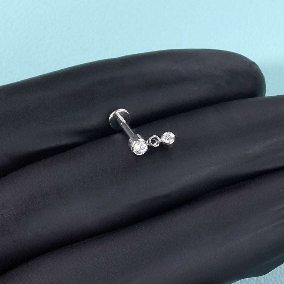 Lingchee titanio 16G hilo Labret anillo circón gota pendiente con espalda plana hélice Piercing G23 piedra cuerpo joyería para nariz