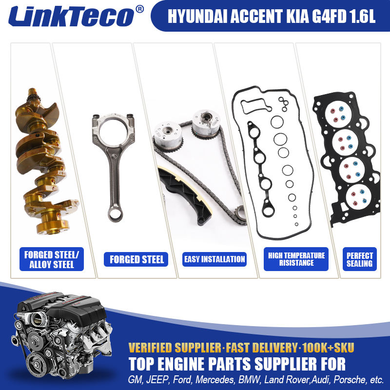 Kit de reconstrucción de reacondicionamiento de motor Linkteco, juego de cadena de distribución de biela de cigüeñal para Hyundai Accent Kia Rio Soul G4FD 1.6L 2012-2017
