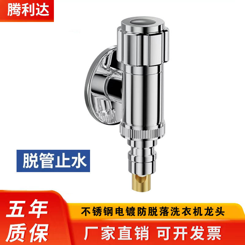 Grifo de Lavadora de Acero Inoxidable Linmu con Válvula de Cierre Automático y Válvula Angular Antidesprendimiento, Entrada de 4mm