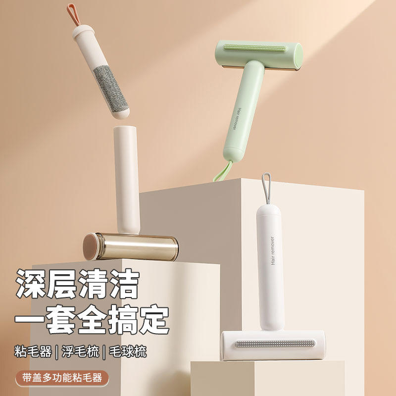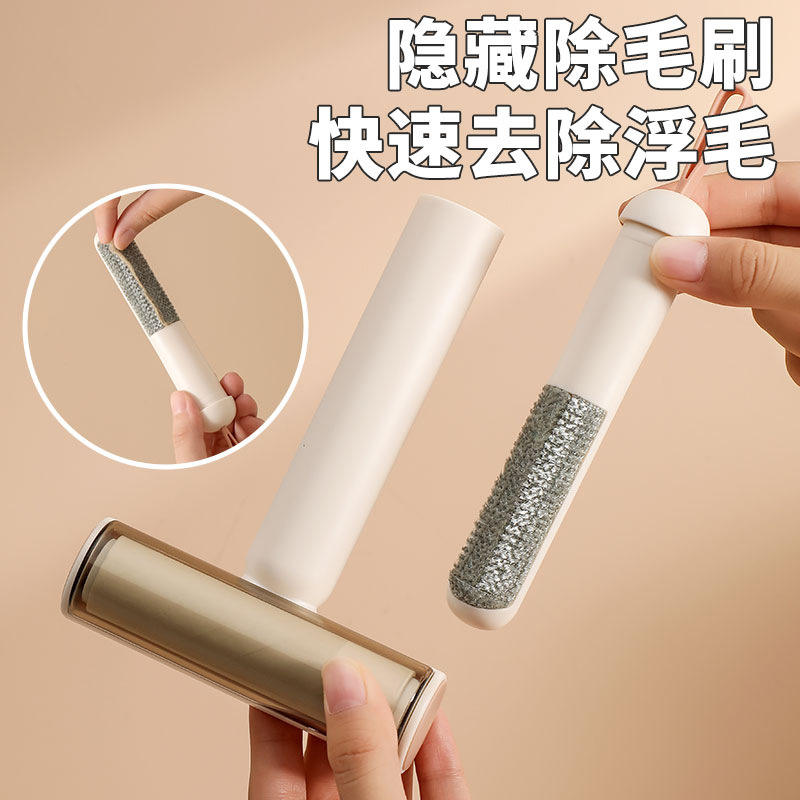 Lint Roller Multifunctional For Clothes Pet Hair Removal With Hidden Brush Elegant White Matcha Green Cream White