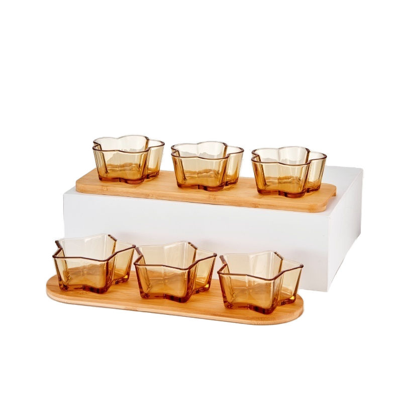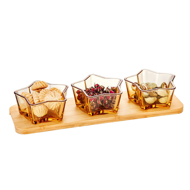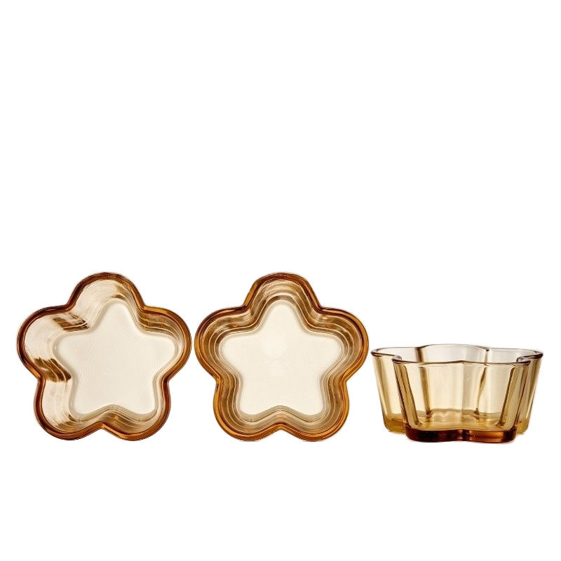 Linuo transparente ámbar resistente al calor alto borosilicato cerveza ensalada postre fruta tazón de vidrio plato redondo conjunto Kit para Decoración