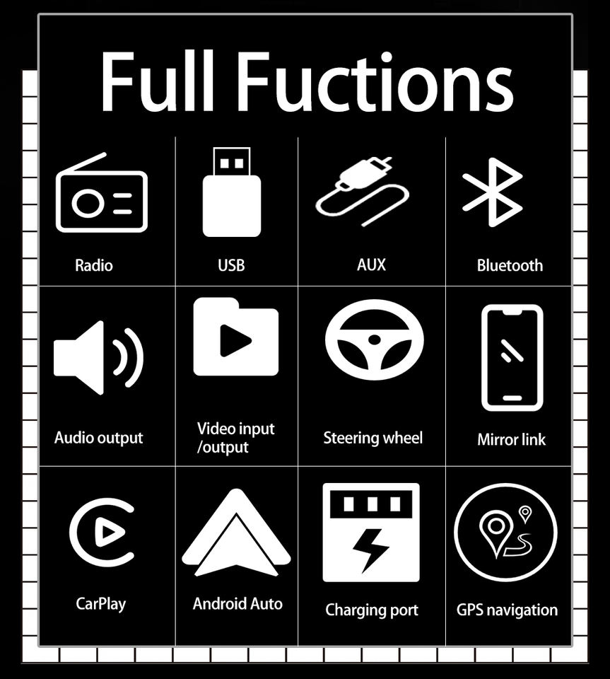 Reproductores MP3 / MP4, Sintonizador Radio, Pantalla táctil, DVR, Transmisor FM, Cámara de copia de seguridad, Invertir la ayuda