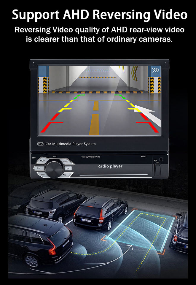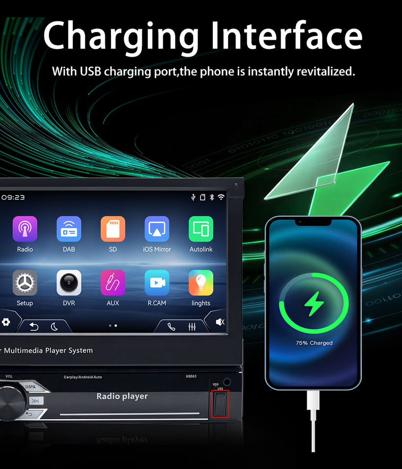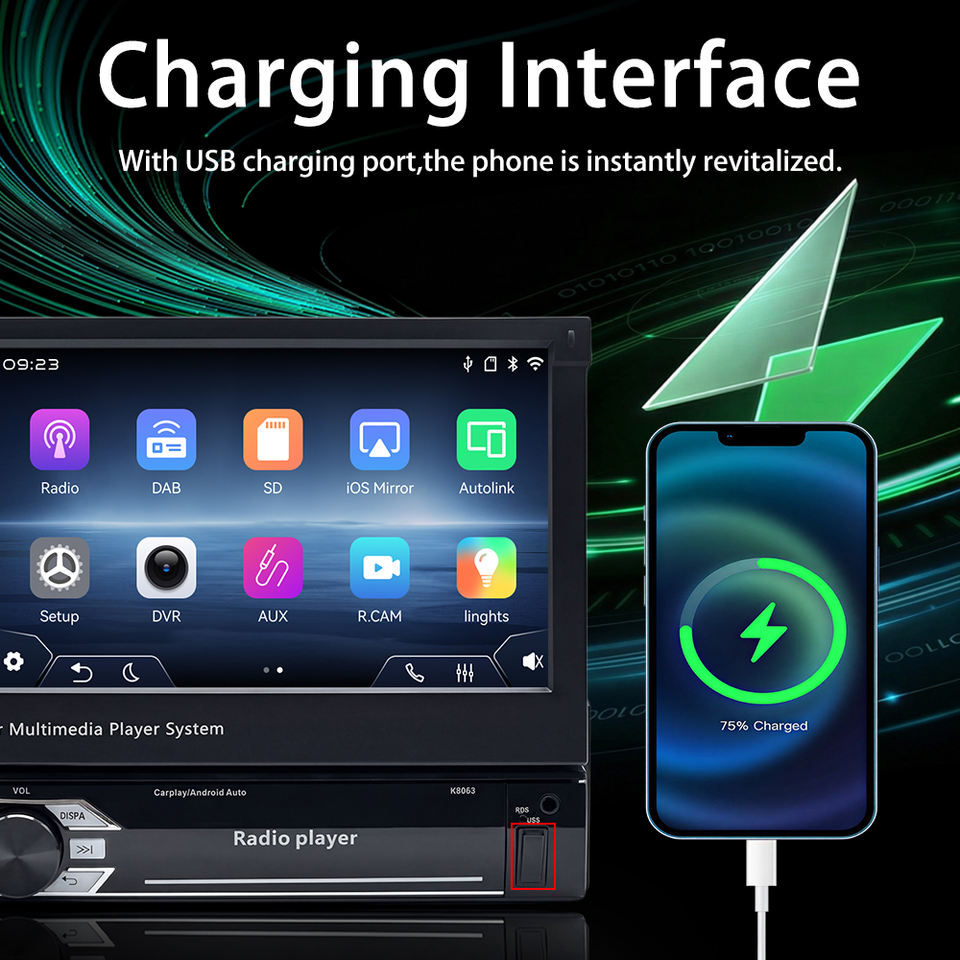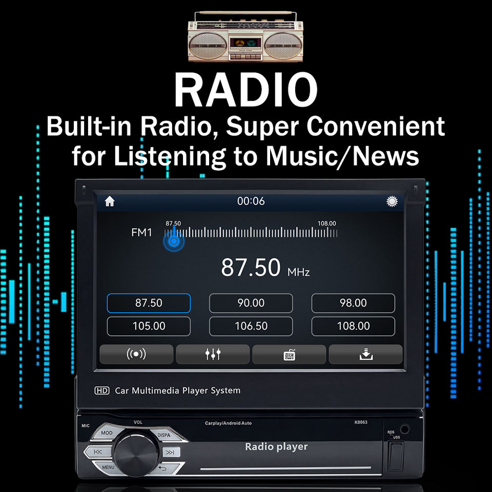 Reproductor de Video y Radio para Auto MP4 MP5 con Pantalla Táctil Retráctil Automática de 1 Din y 7 Pulgadas, con Bluetooth, GPS, Android, Compatible con Carplay