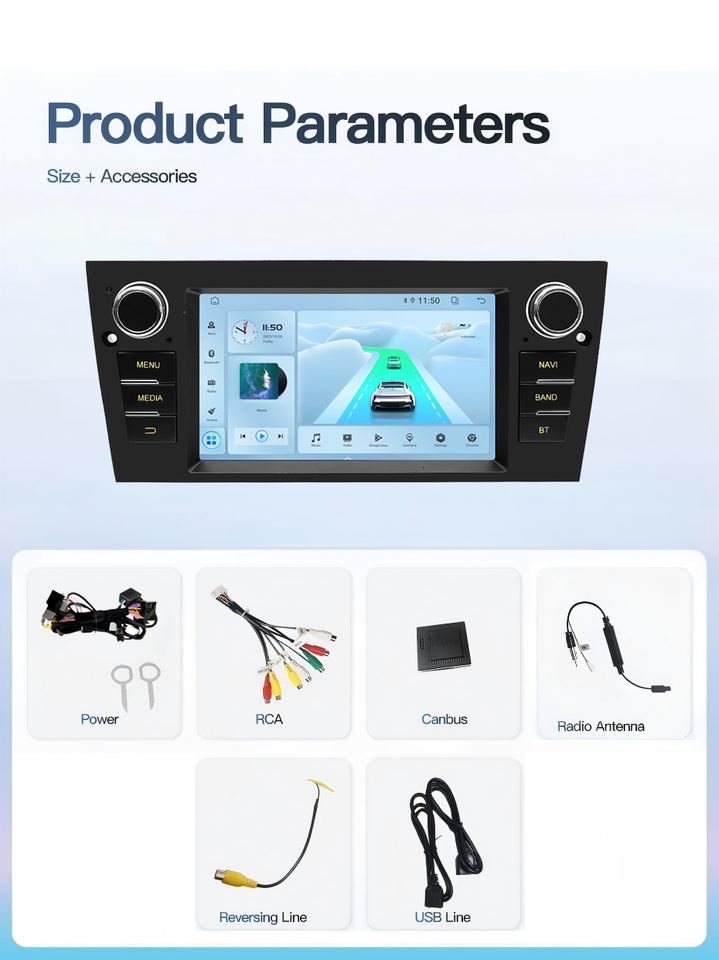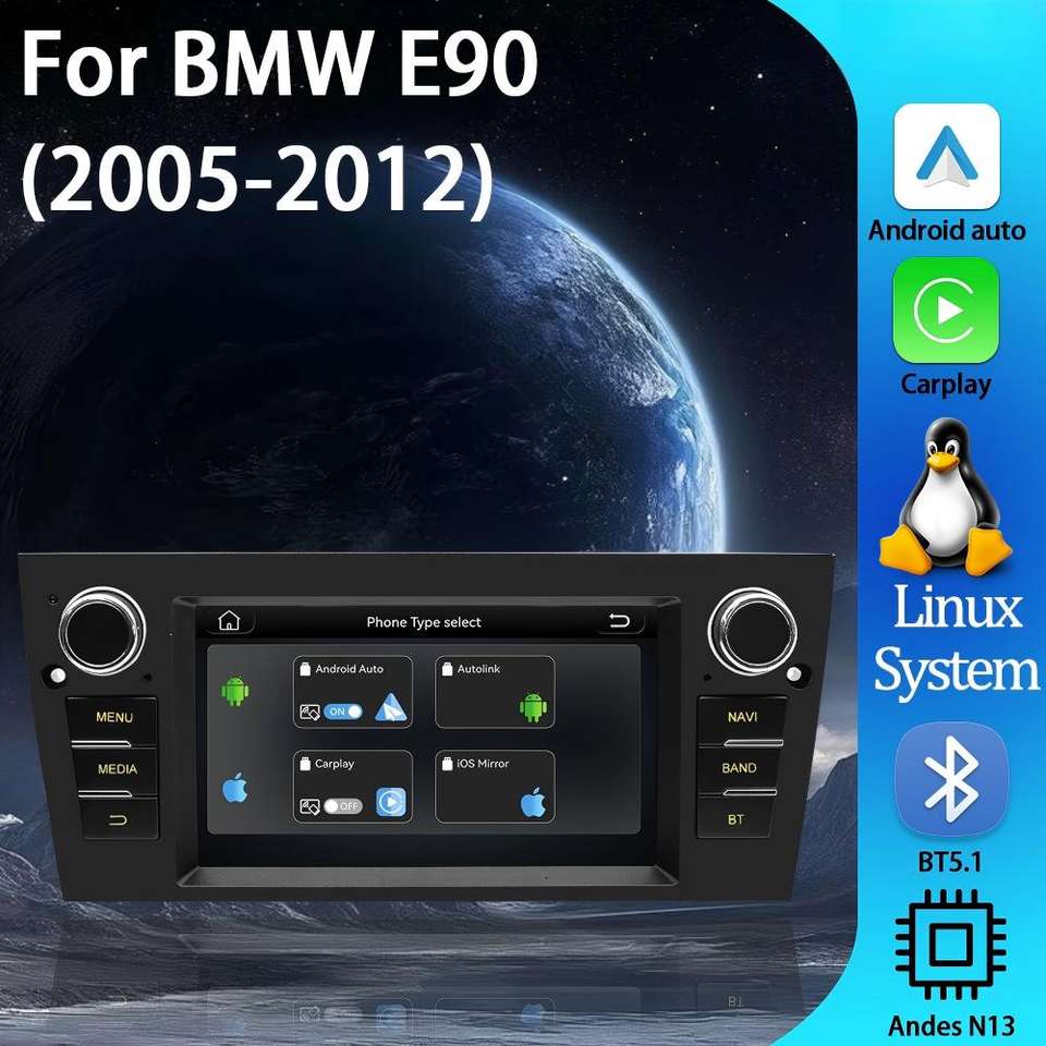Radio para Auto Linux de 7 Pulgadas para BMW Serie 3 E90, Sistema Estéreo, Carplay, Reproductor de Video con Pantalla, Compatible con YouTube