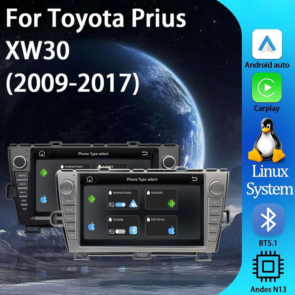 Radio para Auto con Pantalla IPS de 9 Pulgadas para Prius XW30 2009-2013, Sistema Estéreo Multimedia con CarPlay, GPS, MP3 y 1 Año de Garantía