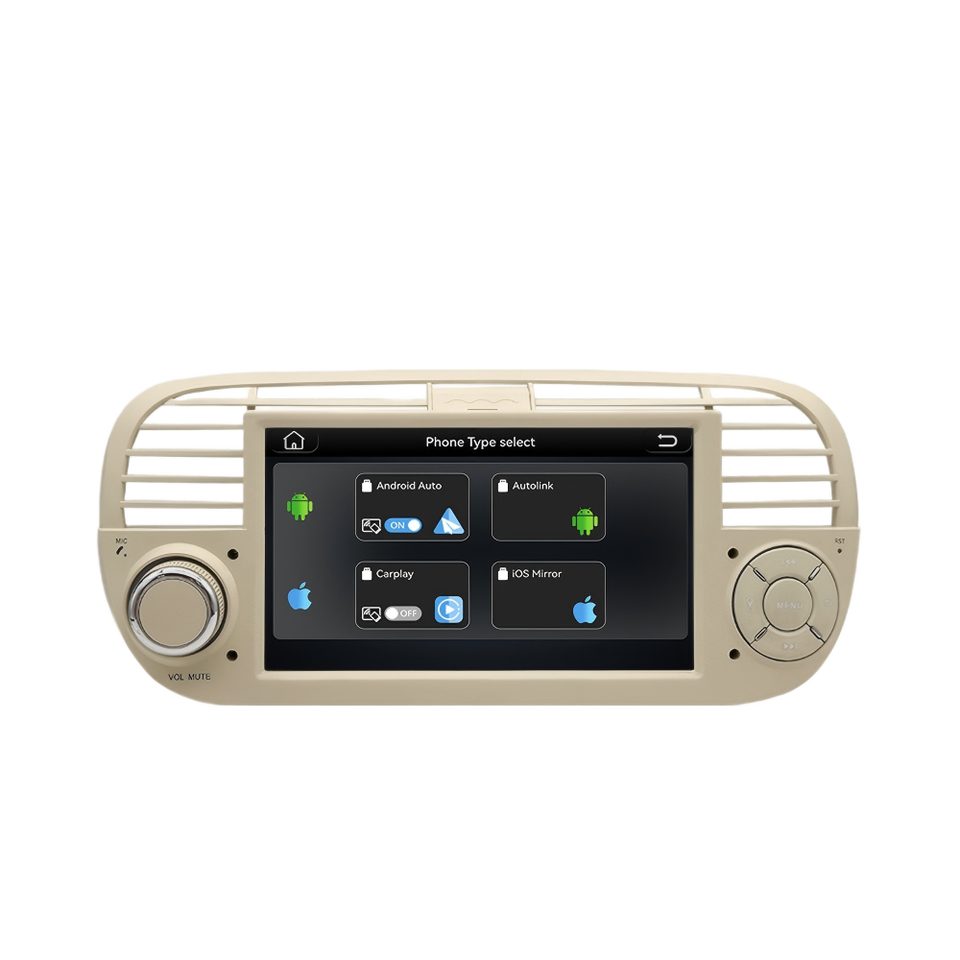 Unidad Principal Inteligente para Automóvil con Sistema Linux para Fiat 500, Pantalla de 7 Pulgadas, Reproductor de Video con Android Auto y CarPlay Integrados, BT, DSP