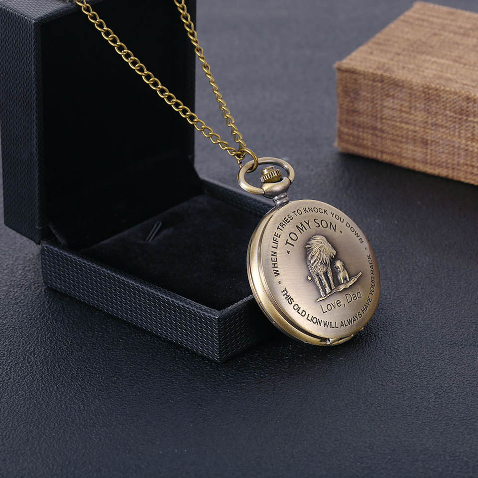 Lion King Movie Steampunk Reloj de bolsillo de cuarzo Reloj analógico de bronce antiguo con cadena de collar Regalo perfecto para hijo o papá