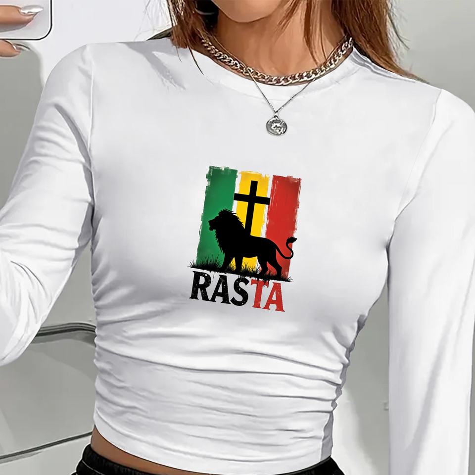 Camisa manga larga moda mujer diseño León con colores RASTA