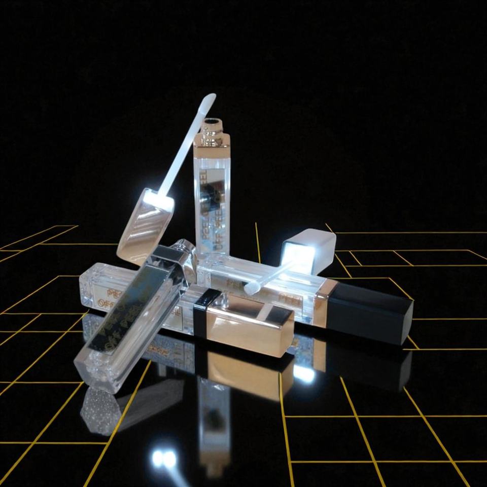 Brillo Labial con Luz LED de 9 ml, Envase de Plástico con Tapa de Rosca, Color Personalizado y Opciones OEM