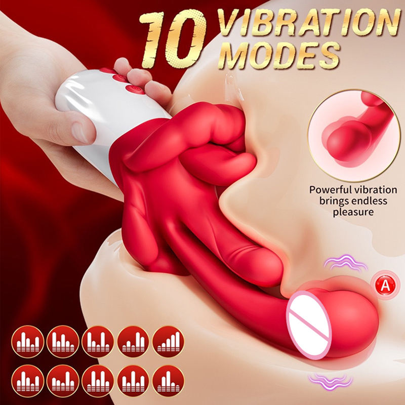 Vibrador con Simulación de Lengua, Multifrecuencia, con Calor, Triple Estimulación, Juguete Sexual para Mujeres