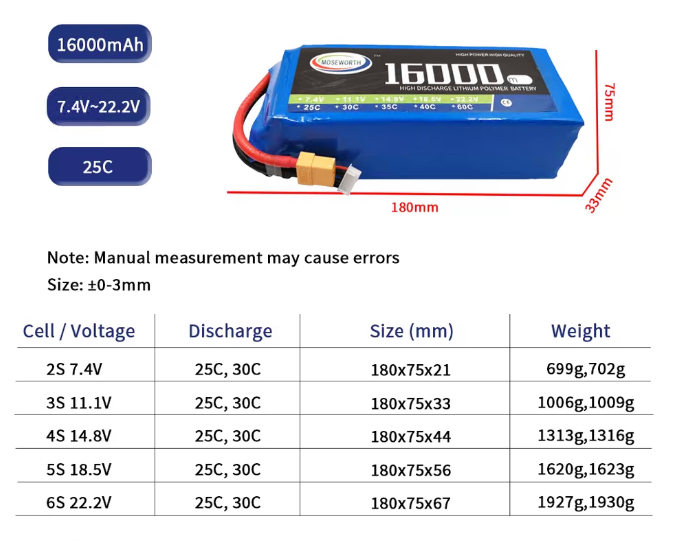 Batería Lipo 2S 25C/30C 10000-22000mAh XT60/XT90/T Plug, Piezas de RC para Coche, Tanque, Barco, Helicóptero, Dron FPV
