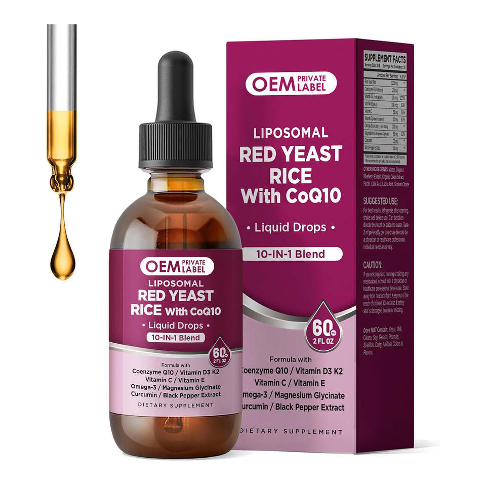 Gotas Líquidas de Arroz de Levadura Roja Liposomal con CoQ10 1200mg, Apoyo para el Colesterol, Extracto de Bergamota Cítrica, Gestión de Energía Natural para Adultos