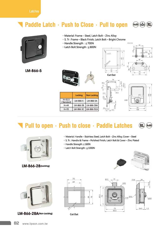 Pestillo de paletaTipo