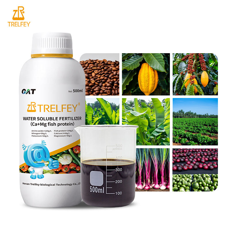 Fertilizante líquido de aminoácidos de extracto de proteína de pescado para rociar cultivos en plantas de aceite de palma y café