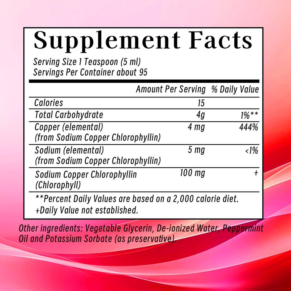 Ingrediente principal:Clorofilina de Sodio y Cobre, Cobre, Aceite de Menta