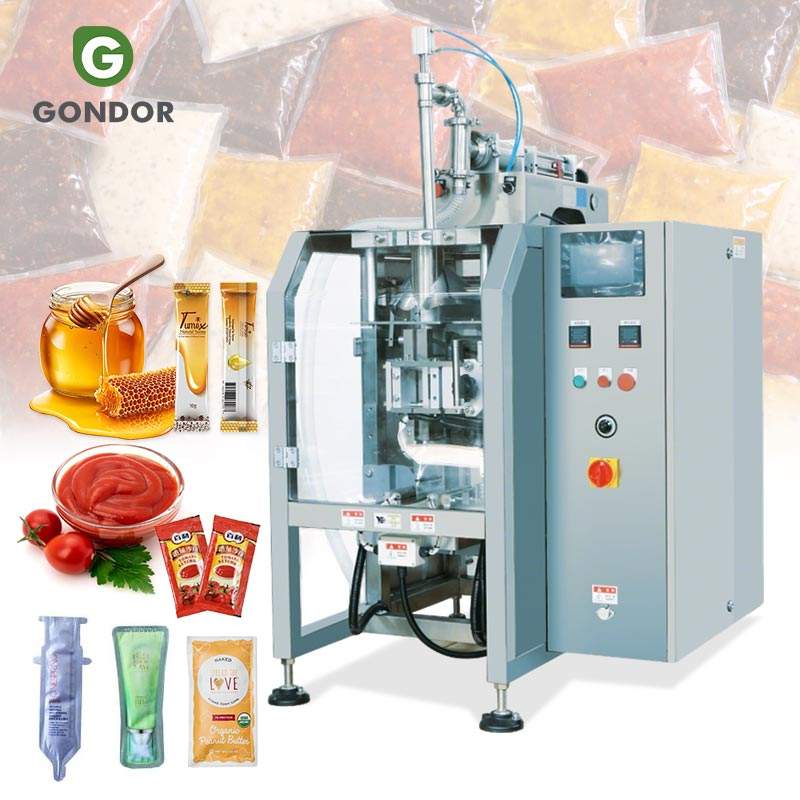 Máquina de llenado y envasado automática de líquidos de 4 carriles para sobres de champú, pasta de chocolate y otros productos, con capacidad de 10 ml por lado.