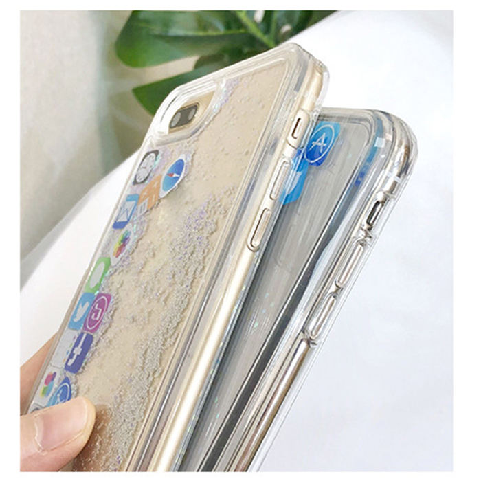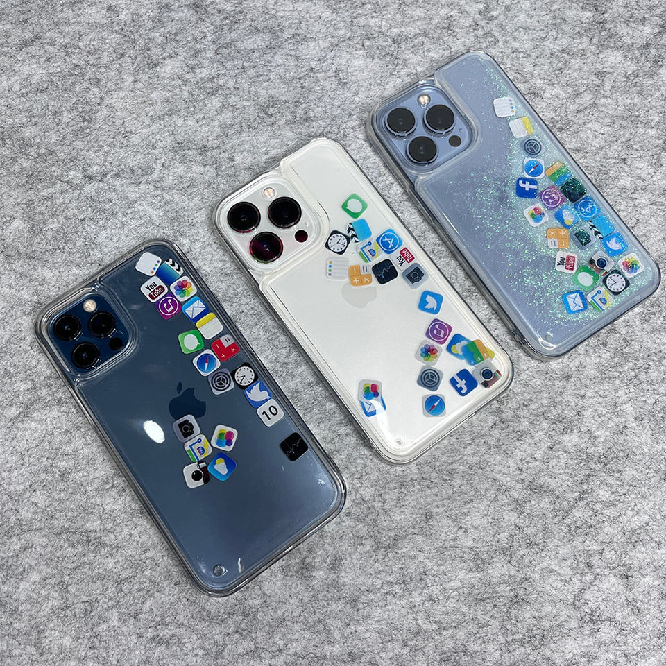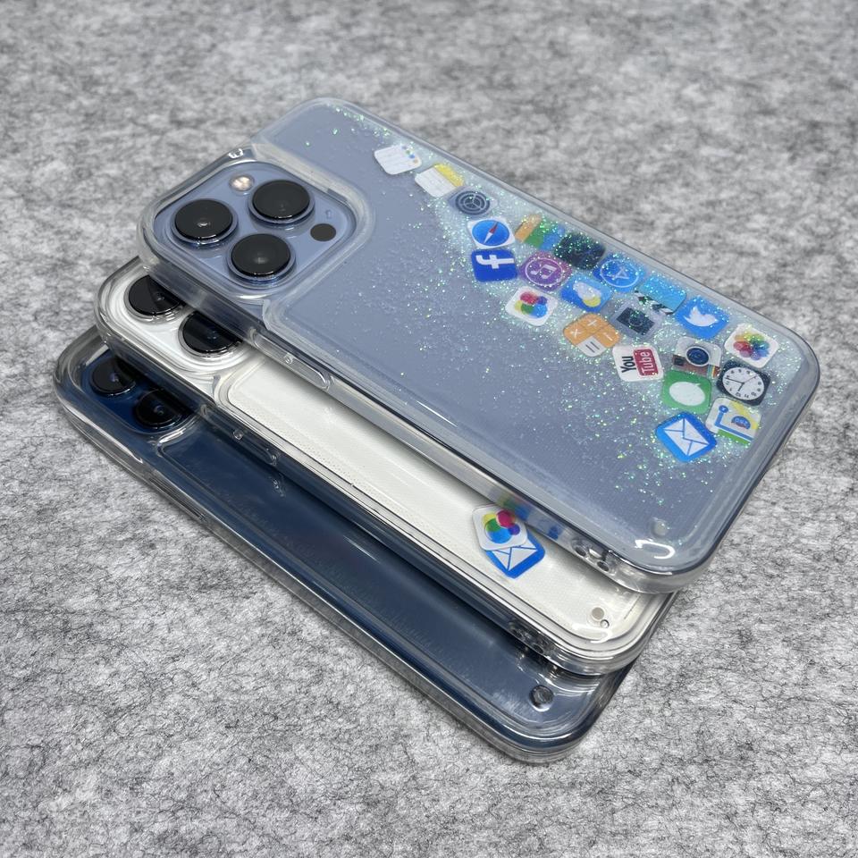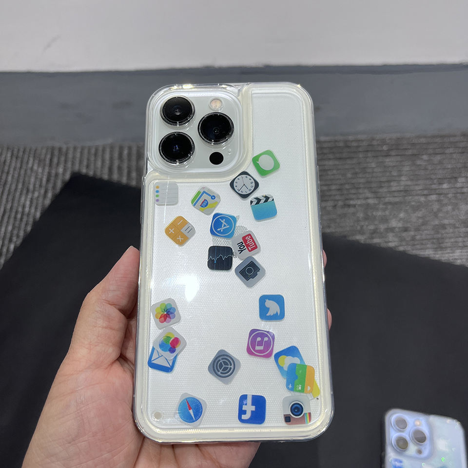 Funda con Purpurina Líquida y Iconos Flotantes, Carcasa Trasera Suave de TPU para iPhone 14 Pro Max