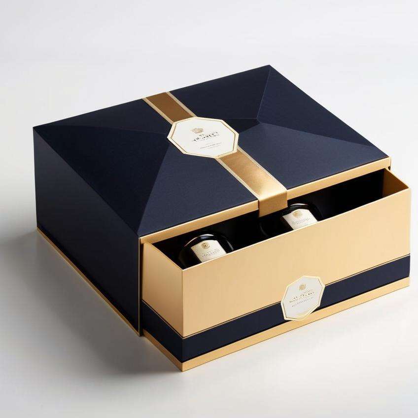 Embalaje de cartón de vidrio de licor Caja de embalaje de botella de vino de lujo magnética de doble puerta abierta Premium personalizada