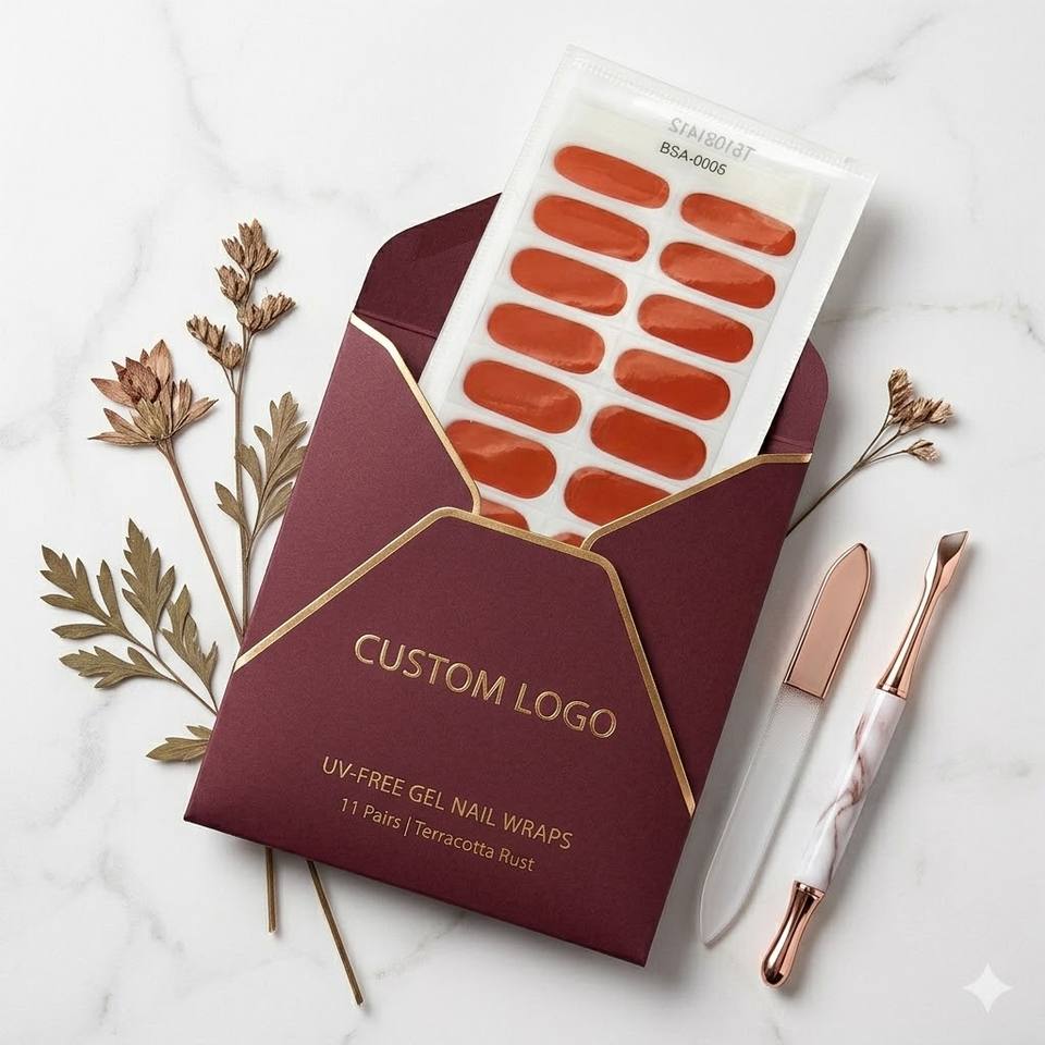 Envolturas de Uñas en Gel Color Terracota Litchea, Resistentes a los Rayos UV, Sin HEMA, Calidad de Salón, Venta al Por Mayor, Alto Brillo, No Tóxicas, Ecológicas