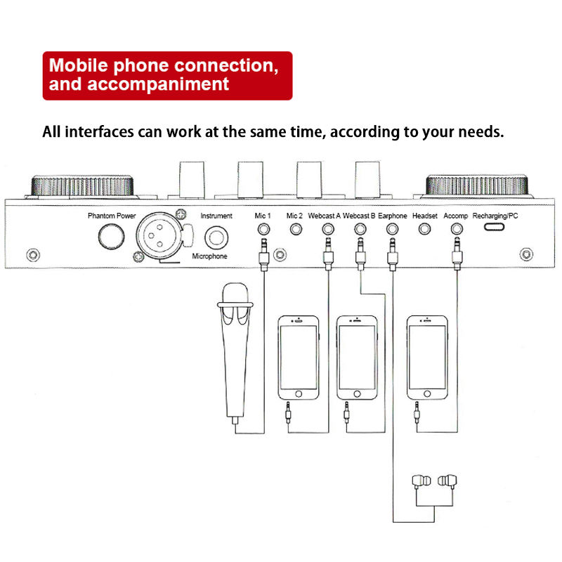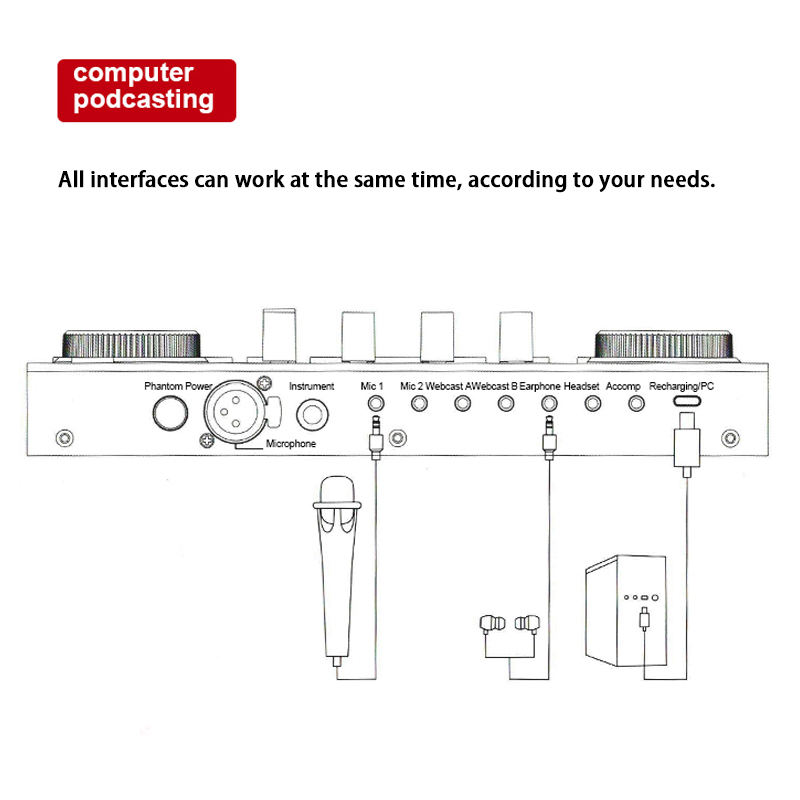 Tarjeta de sonido en vivo Interfaz de audio Tarjeta de sonido Mezclador de audio ajustable