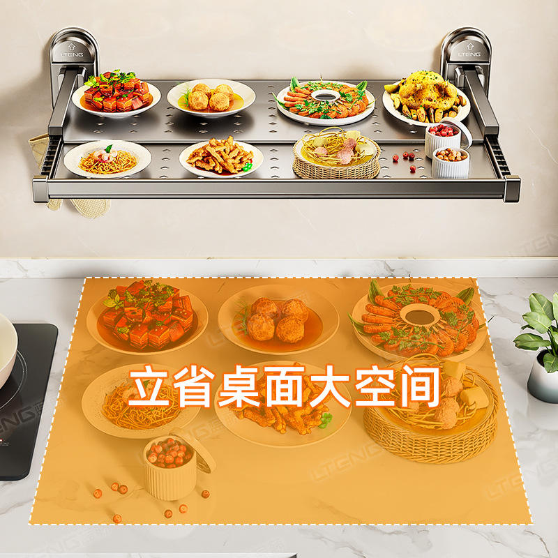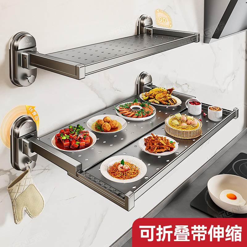 Estante de Preparación de Alimentos Liteng, Montado en la Pared, Telescópico, Plegable, Multifuncional, Organizador de Cocina, Instalación sin Taladro