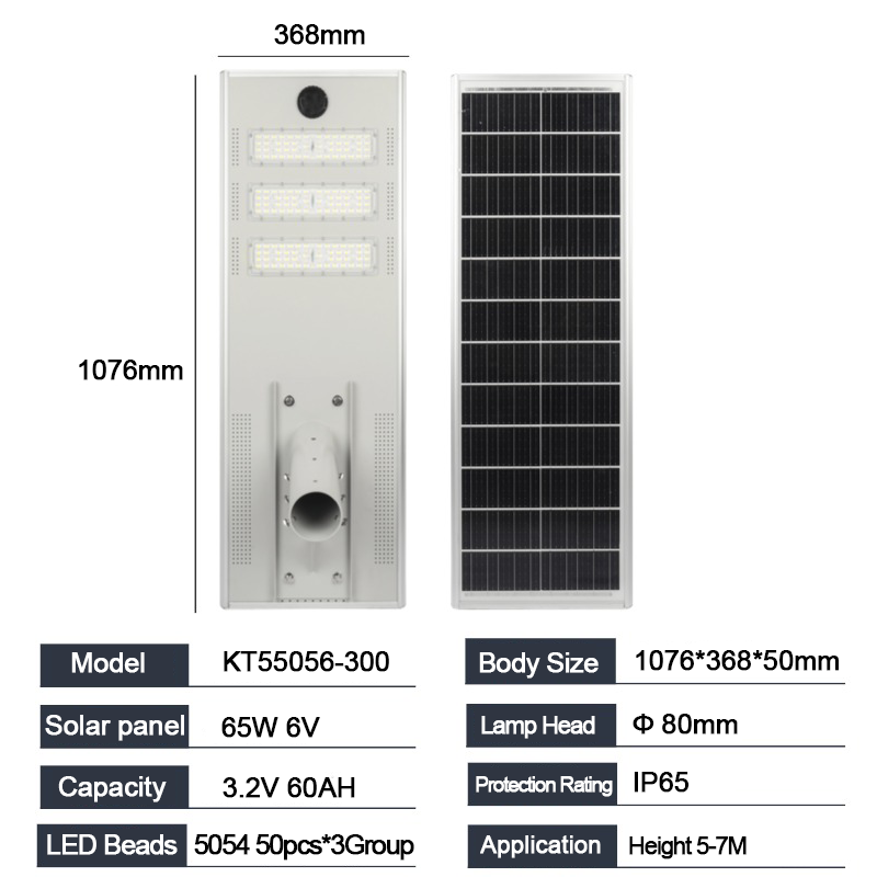 Controlador de Carga Solar para Baterías de Litio, Farola Solar LED de 300w, se Enciende Automáticamente al Anochecer y se Apaga al Amanecer