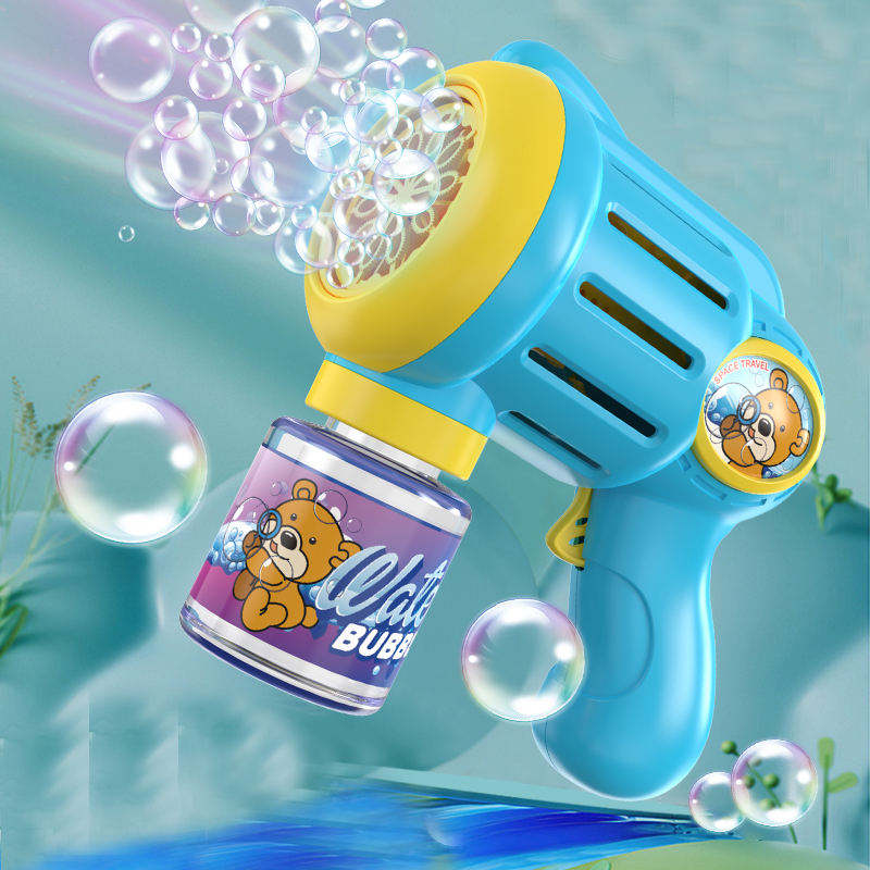 Little Bear Multi agujero pistola de burbujas totalmente automática 10 agujeros burbuja eléctrica Bazooka pistola cohete Boom con luz burbuja soplador juguete