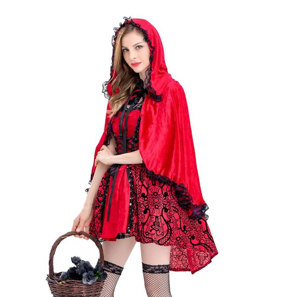 Disfraz de Caperucita Roja, disfraz de fantasía de Halloween, disfraz de cuento de hadas para fiesta, traje de Cosplay para mujeres adultas