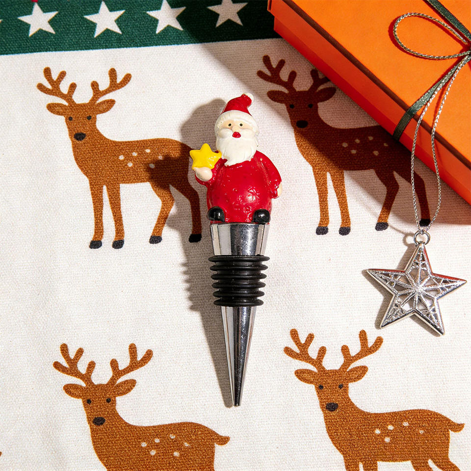 Tapones de vacío metálicos reutilizables para botellas de vino con diseño de Caperucita Roja y Papá Noel, bomba salvadora de vino para Navidad y festividades.