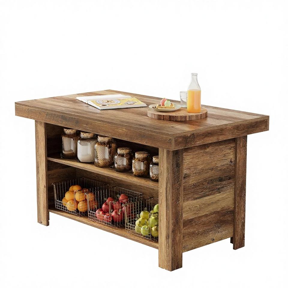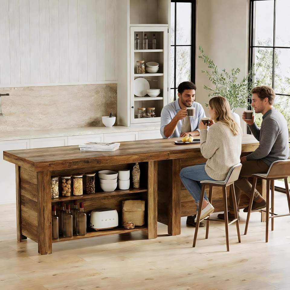 Mesa de Bar/Isla de Cocina Little Tree de 55 Pulgadas, Estilo Rústico Moderno, de Madera, con 3 Niveles, con Almacenamiento, Amplia Superficie de Trabajo y Espacio para las Piernas