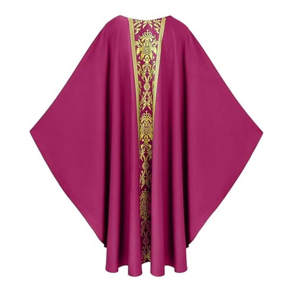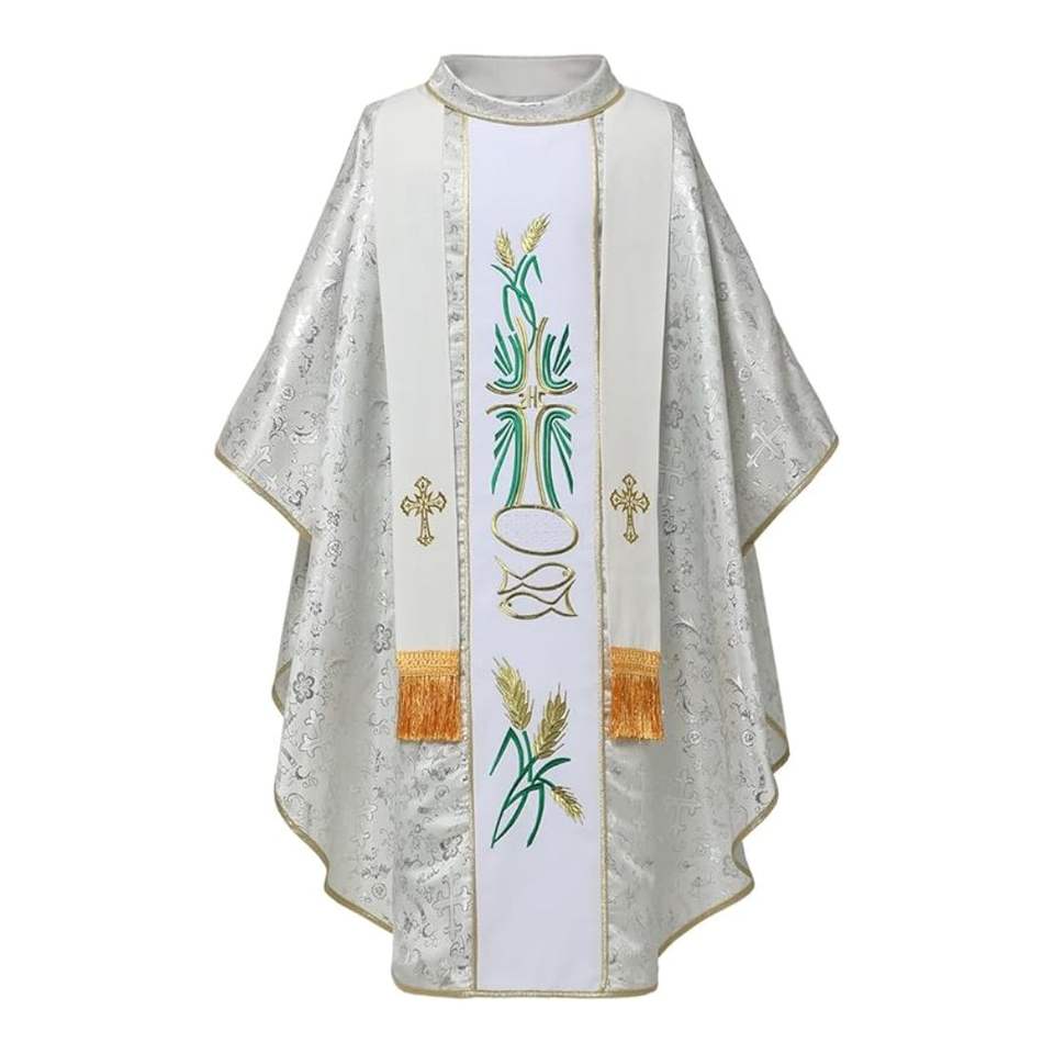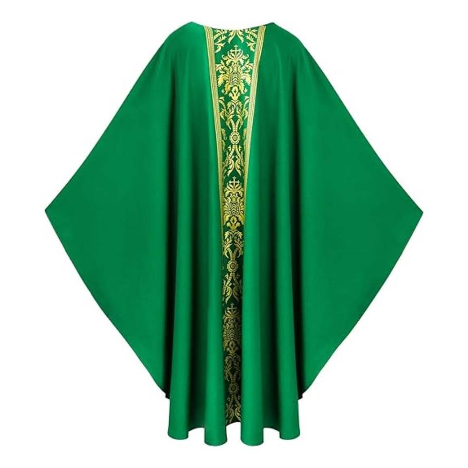 Túnica casulla verde litúrgica hecha a mano con bordado cruzado, vestimenta ligera para sacerdotes católicos