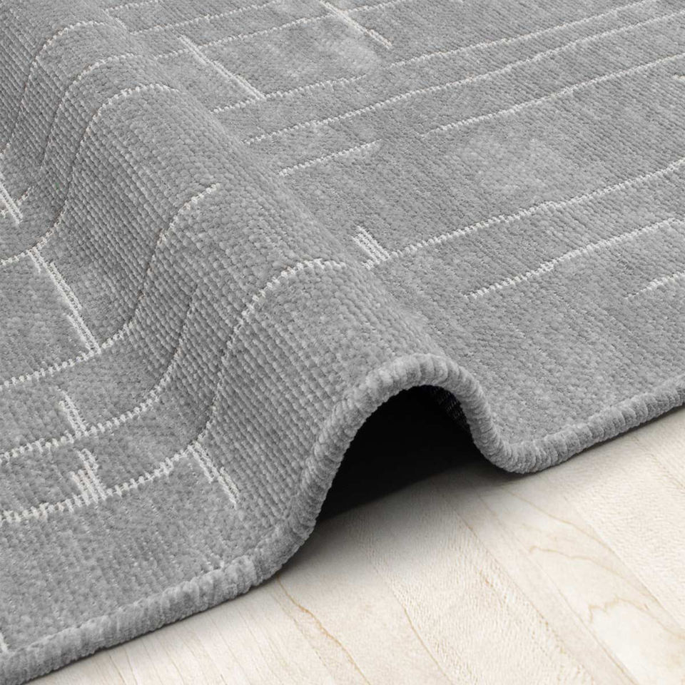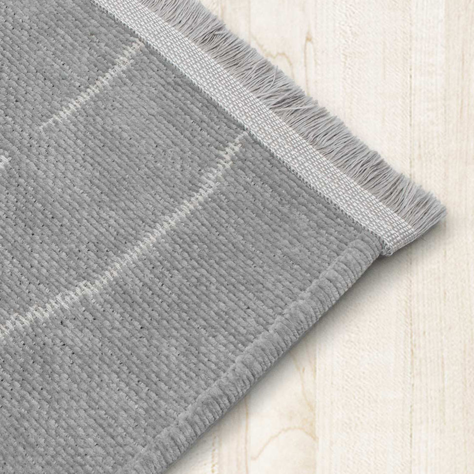 Alfombra Geométrica Chenille Gris Liva de Turkua Home, 7mm, Lavable, Antideslizante, Poliéster/Algodón, Ecológica, Apta para Mascotas, Tamaños Personalizados