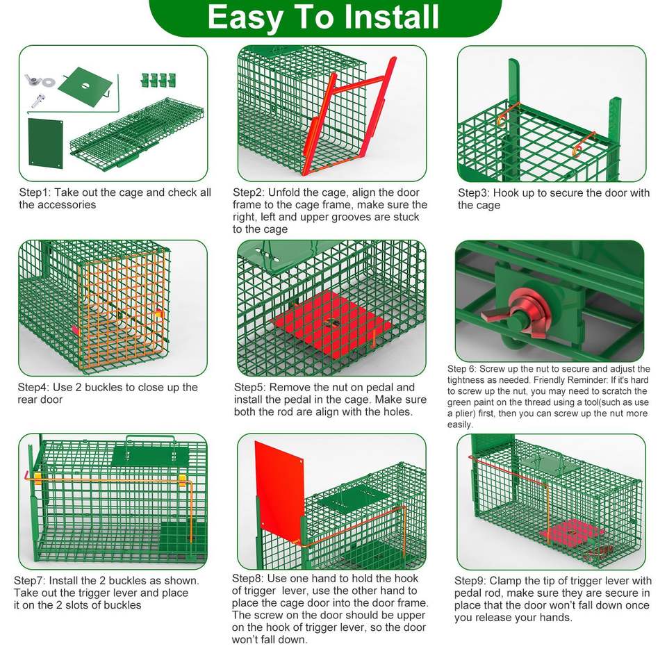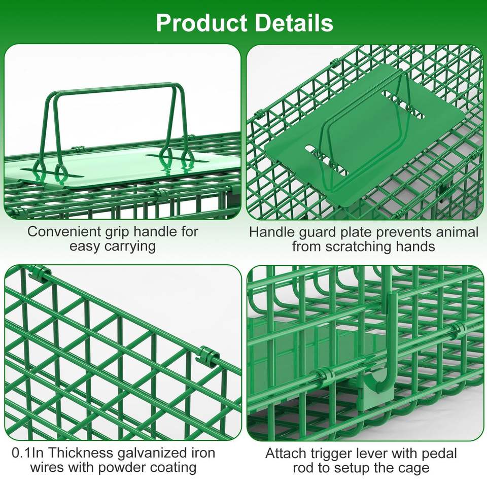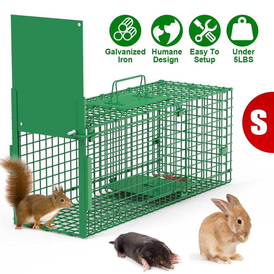 Trampa de hierro galvanizado para animales vivos, fácil de instalar, para mapaches, armadillos, marmotas, trampas para mascotas