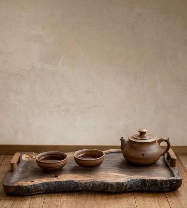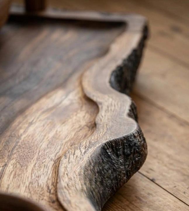 Bandeja de Servir de Madera de Nogal con Borde Natural, Plato Rústico con Asas, Ecológico, Portátil, para Catering y Uso Doméstico