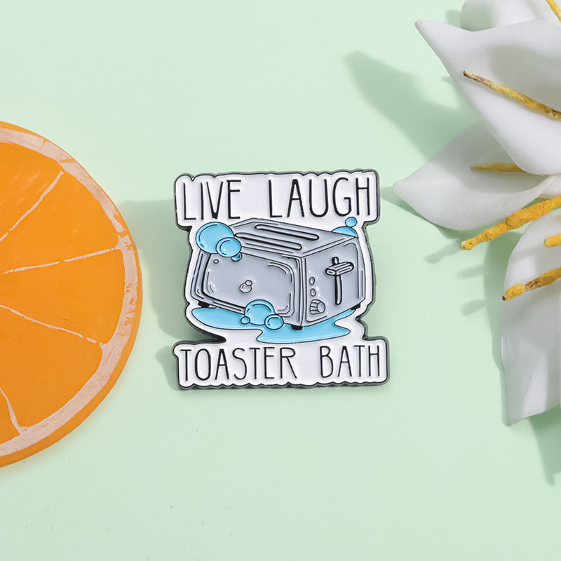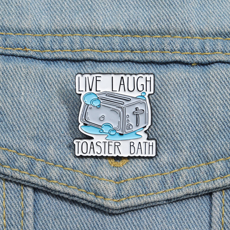 Live Laugh Toaster baño esmalte Pin divertido humor oscuro broche creativo solapa insignia joyería regalo para amigos