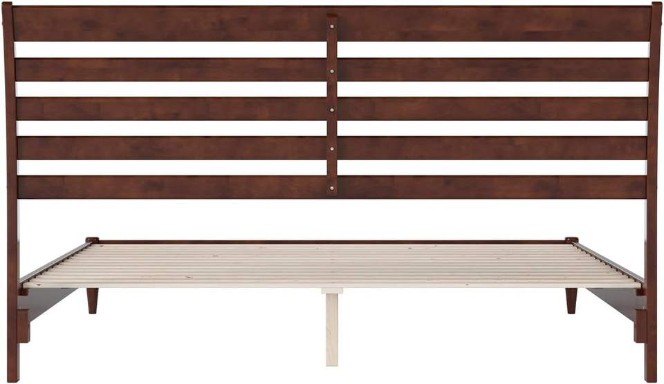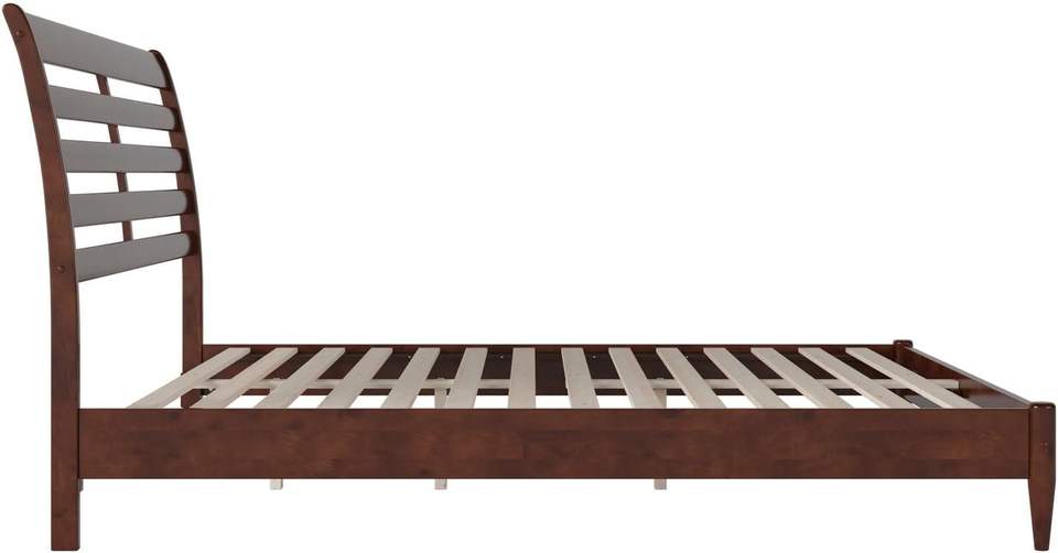 Cama de plataforma de madera maciza Living King en perfil bajo de nogal con diseño tradicional elegante