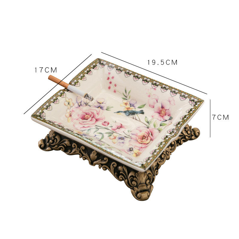 Mesa de centro para sala de estar, Cenicero creativo para el hogar, Cenicero de cerámica pintado a mano con flores y pájaros