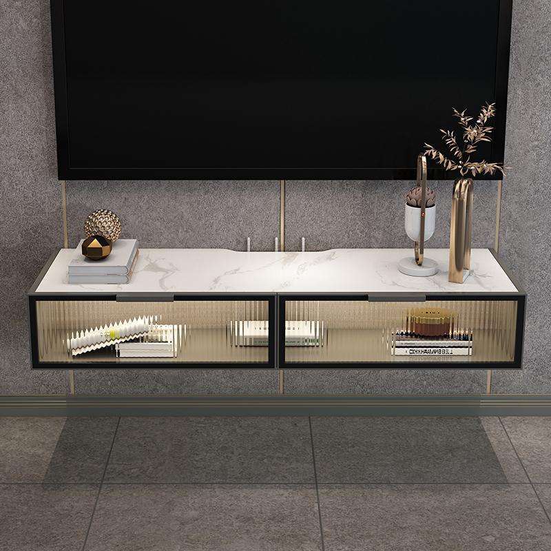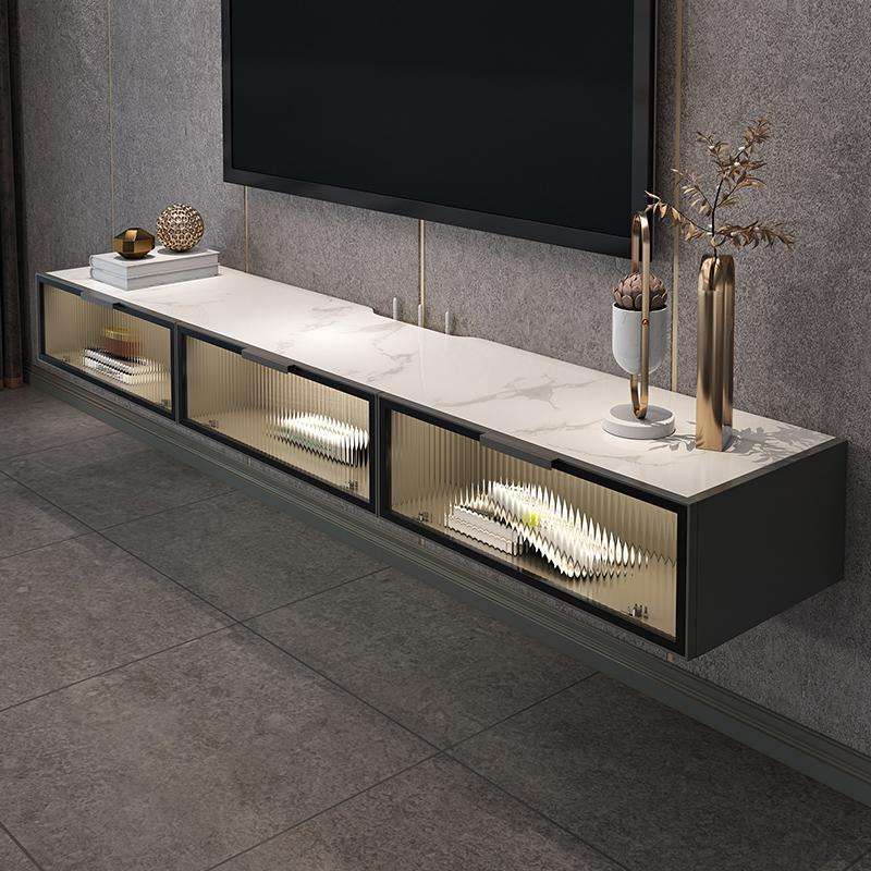 Muebles de sala de estar Soporte de exhibición de TV acanalado Soporte de TV flotante LED Estantes de TV colgantes montados en la pared modernos