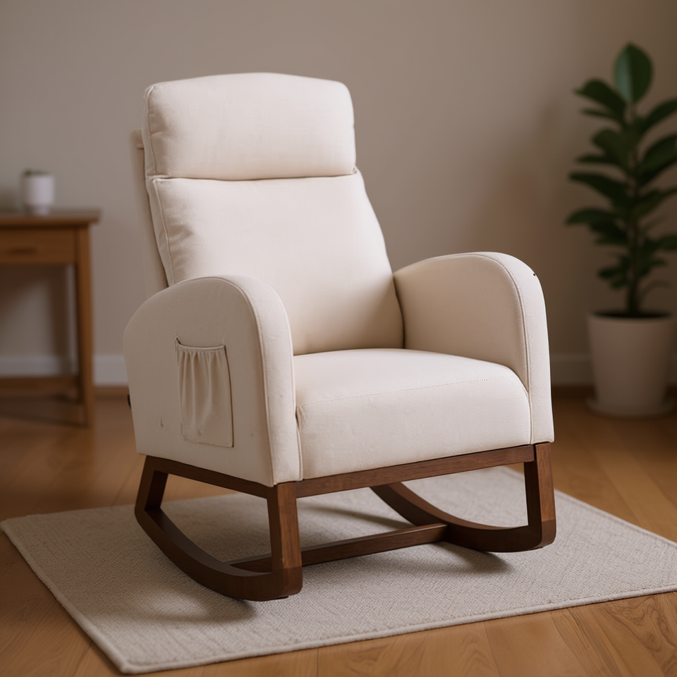 Sillón Mecedor para Sala de Estar, Patas de Madera, Estilo Contemporáneo, Diseño Moderno, Respaldo Sólido, Muebles para el Hogar