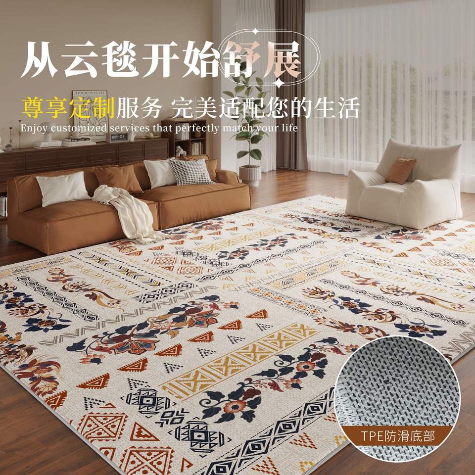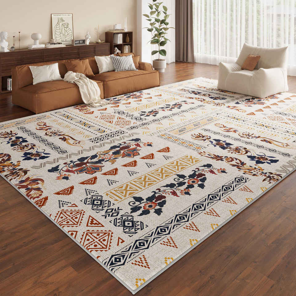 Alfombra de Salón Rectangular con Diseño Floral, Lavable, Decoración para el Hogar