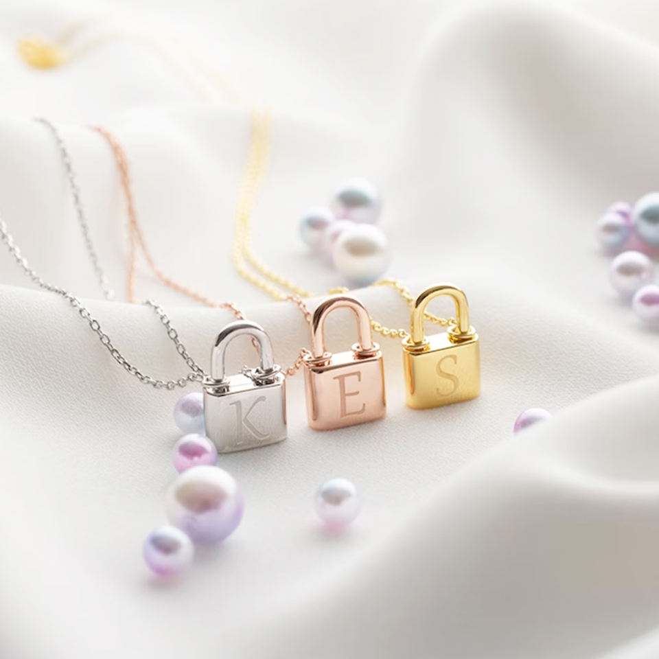 Collar De cerradura con colgante, cadena De Oro con inicial, 18 kilados, grabado, acero inoxidable, joyería chapada en Oro