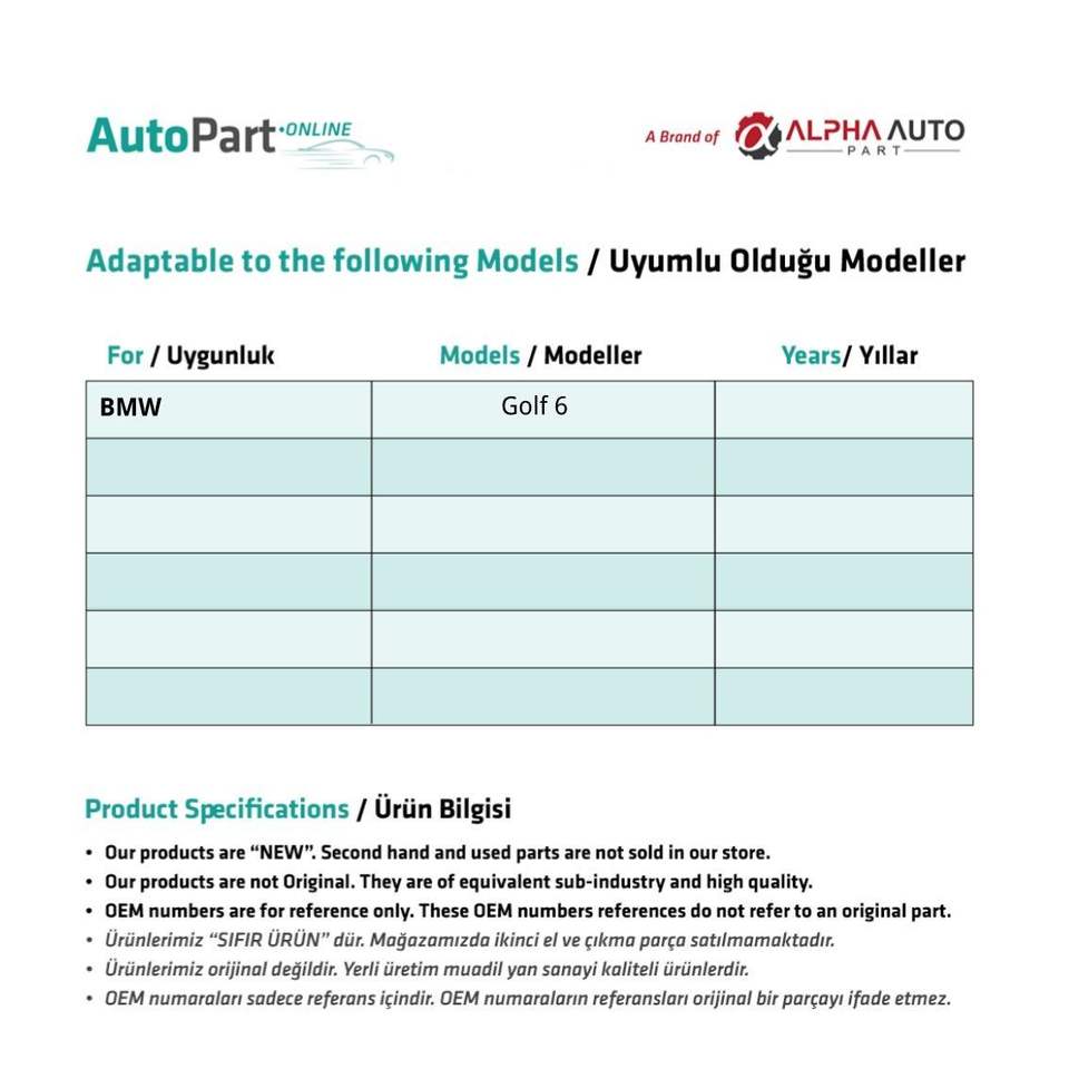 Marca:Volkswagen Compatible Spare Parts