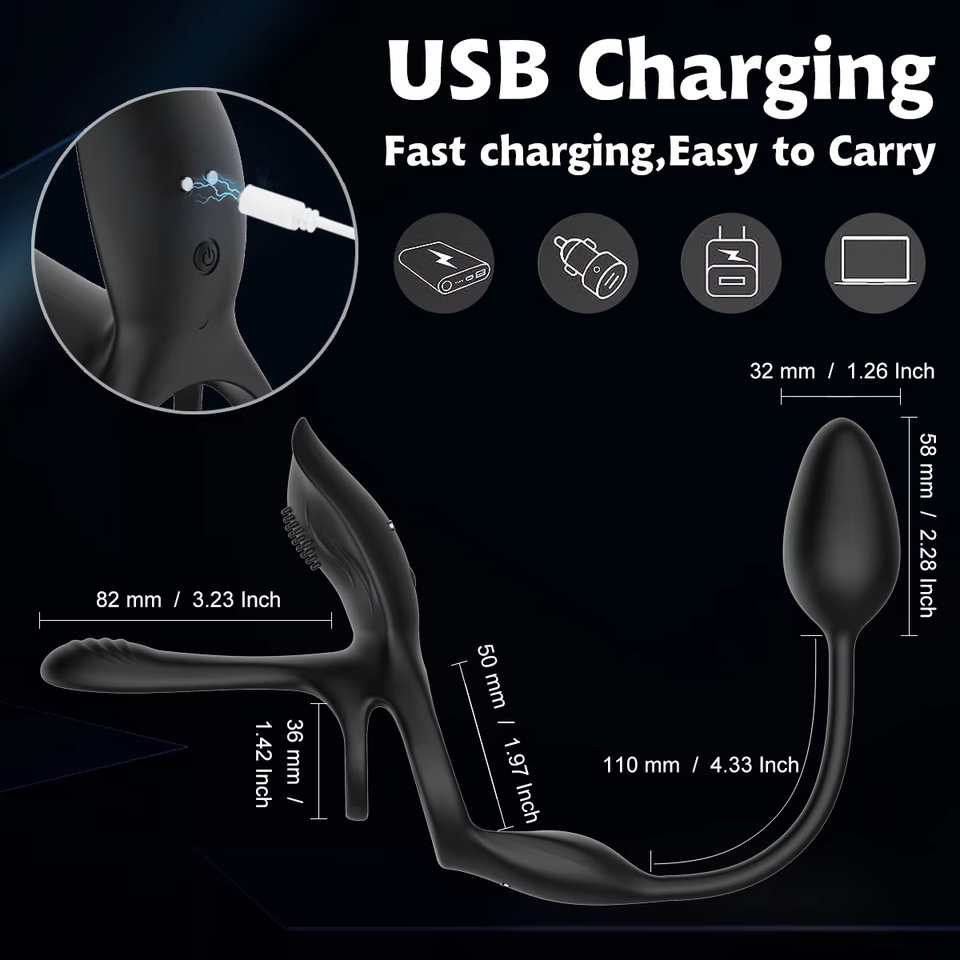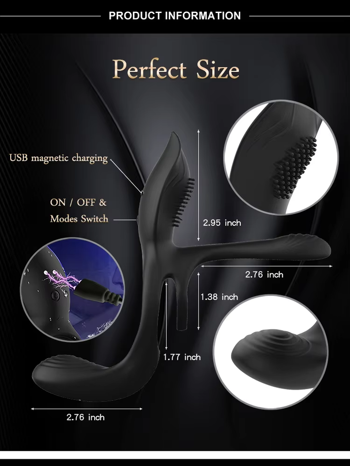 Anillo Vibrador de Silicona de Doble Anillo con Control Remoto, Recargable, Multifrecuencia, Juguete Sexual para Parejas, Resonancia, para Adultos