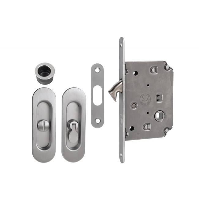 Cerradura para puertas correderas con mango largo, cromo mate, WC
